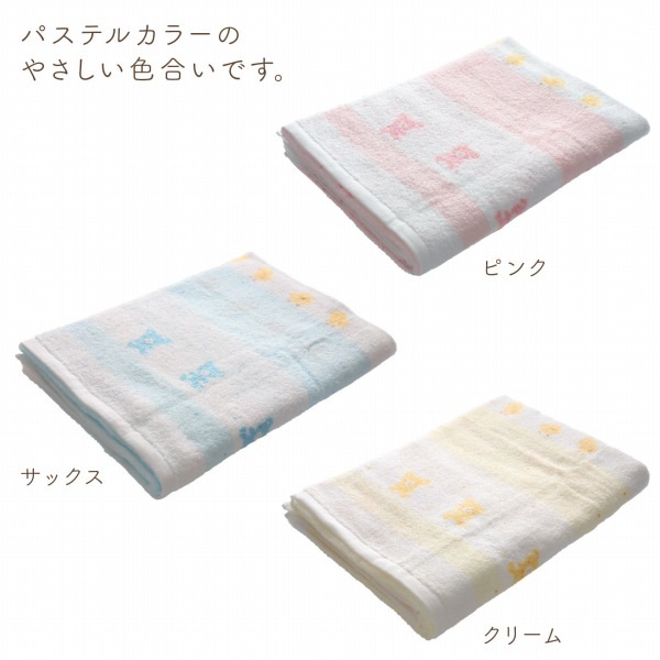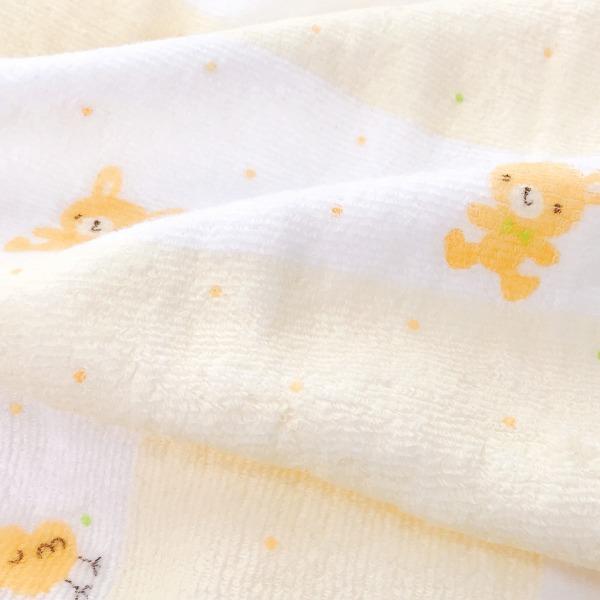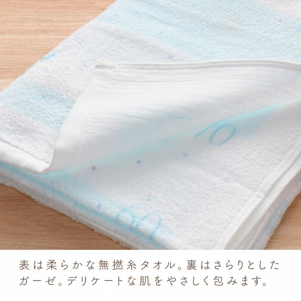タオル産業発祥の地、泉州。 伝統の“後晒し製法”でつくられたバスタオルは、吸湿性・吸水性にすぐれデリケートな赤ちゃんの肌にもやさしい使い心地です。 【無撚糸のお手入れ方法】 洗濯の時は、洗濯ネットに入れ最初の2?3回は柔軟剤を使用しないでください。 2?3回の洗濯で全体の組織が締まり、毛羽が抜けにくくなります。 その後の柔軟剤使用は構いません。 洗濯後毛羽がからむ場合がありますが、干す前によく振るとからみが少なくなります。(洗濯ネット使用)(手洗いの場合は押し洗い) |