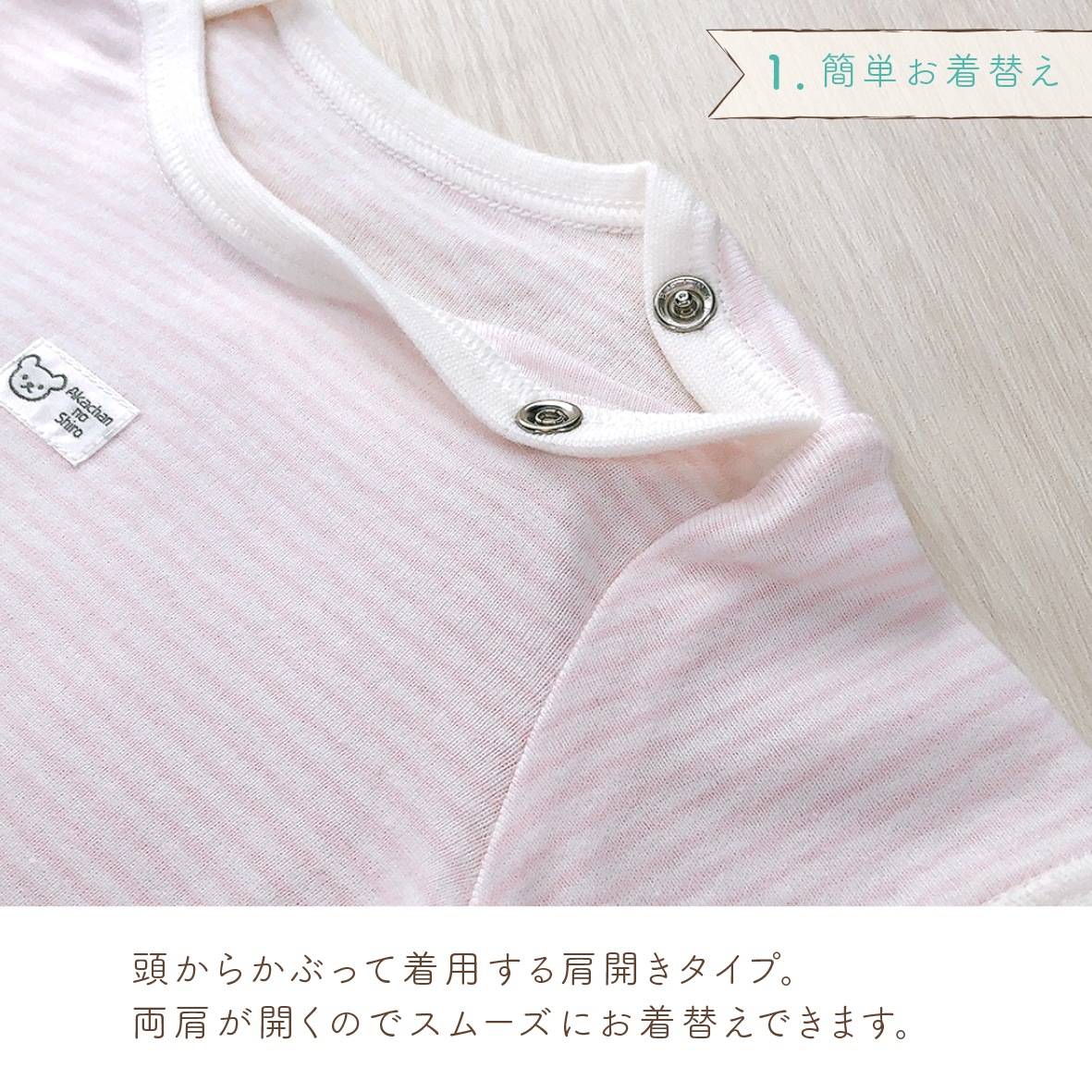 ロンパース肌着 肩開きボーダー