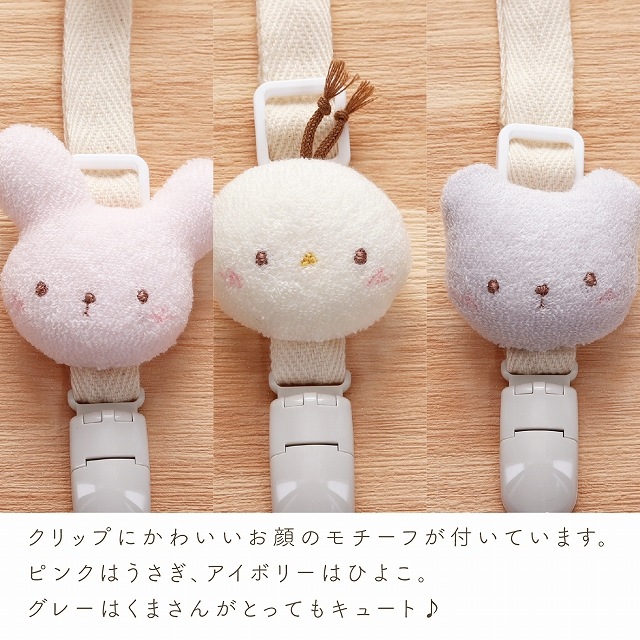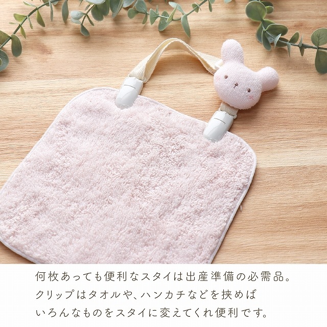 | ハンカチをクリップで留めて、簡単にスタイのように使える便利アイテムです。 どうぶつモチーフがキュートなクリップはアジャスター付きで、長さの調節も可能です。 ふんわりとたっぷり空気を含んだやわらかなタオル「エアーかおるタオル」素材。 軽くてふわふわの肌にやさしい使い心地です。 何枚あっても便利なスタイは、出産準備の必需品。プレゼントにも喜ばれる人気アイテムです。 |