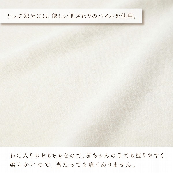 本体:綿100%、ゴム部分:綿75% ポリエステル25%(プラスチック製鈴入り)
