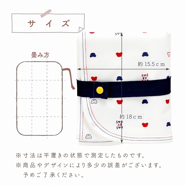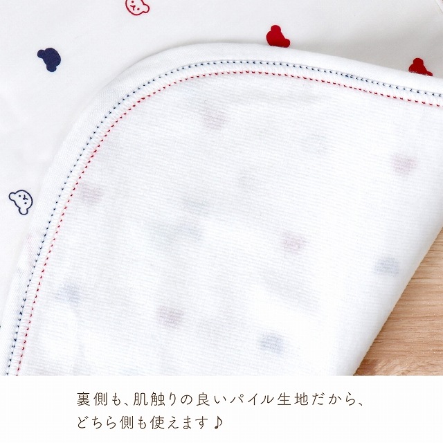 | 表:ポリウレタンラミネート、裏:綿100%、縁取り部:綿100% |