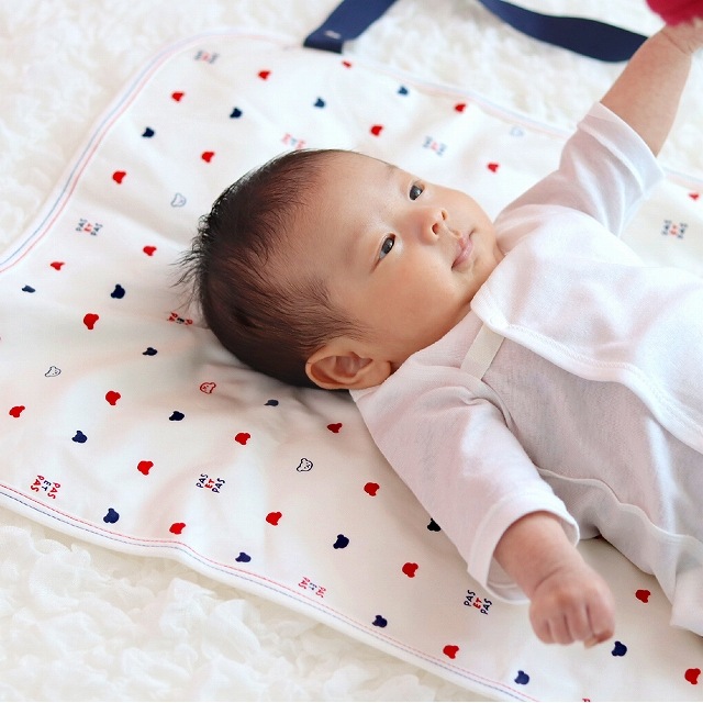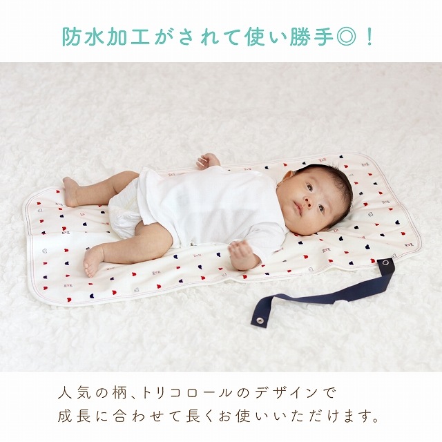 | おでかけの時など、やわらかいシートの上でおむつを替えてあげてください。折りたたんでコンパクトになるので、持ち運びにも便利です。赤ちゃんの城ロングセラーのトリコロールデザインです。 |