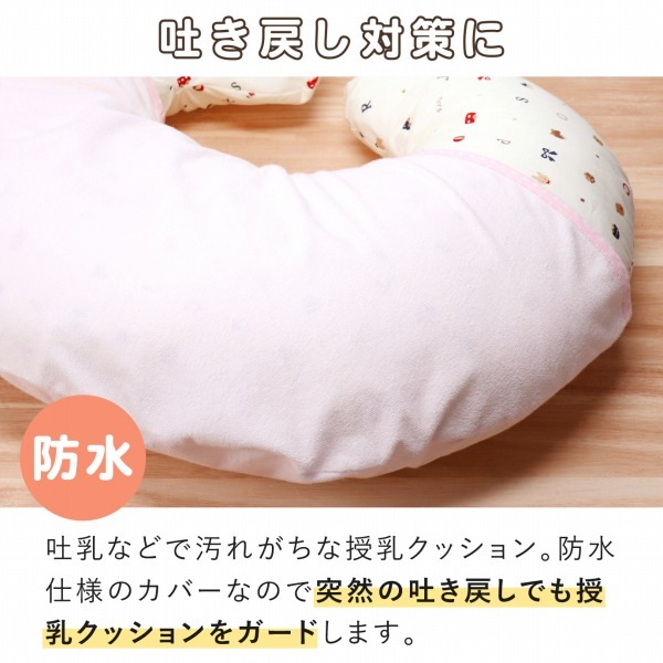 | 赤ちゃんの城の授乳クッションに合うサイズになっています。吐乳などで汚れやすい授乳クッションに、着脱が簡単でしかも防水機能がついたカバーができました。裏地が防水なので摩擦が少なく、着脱がスムーズに出来ます。お洗濯も一般のものと一緒に洗えていつも清潔に保てます。防水仕様なので、突然のミルクのはき戻しでも、クッションの中に染みこみません。 |