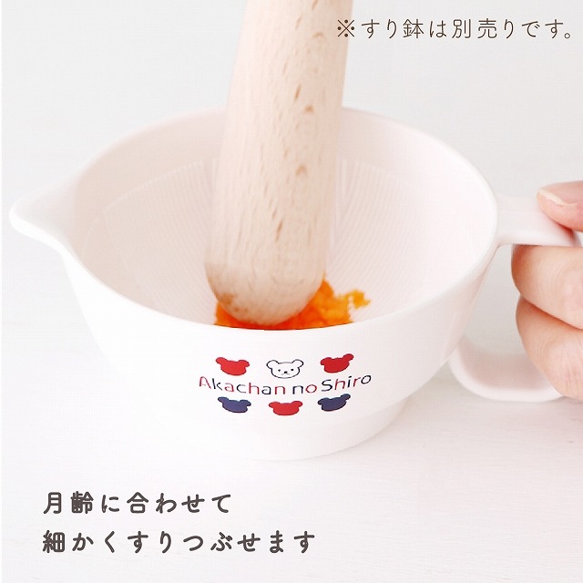 食材をすりつぶすための天然木のすり棒です。初期の離乳食作りに便利なアイテムです。