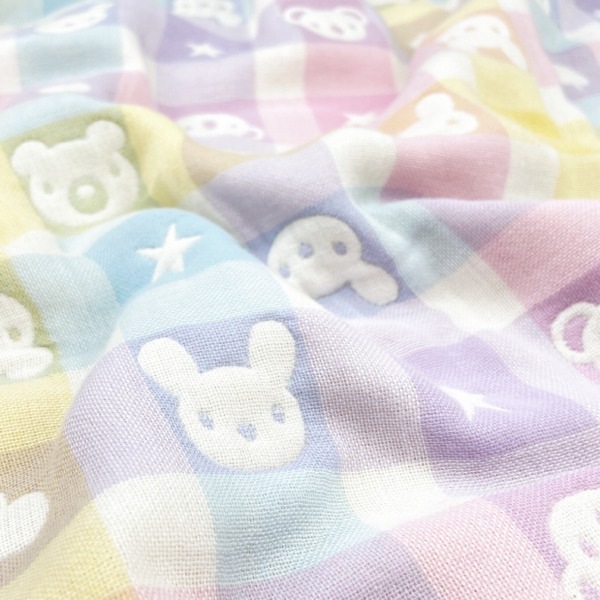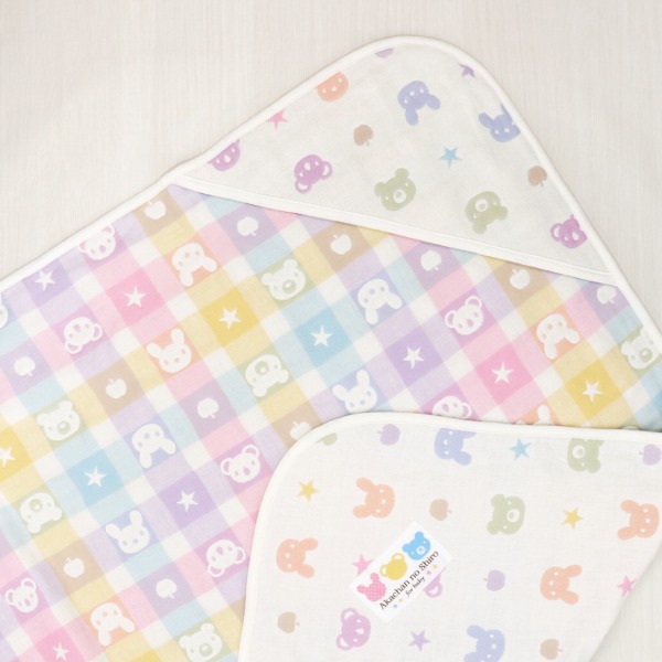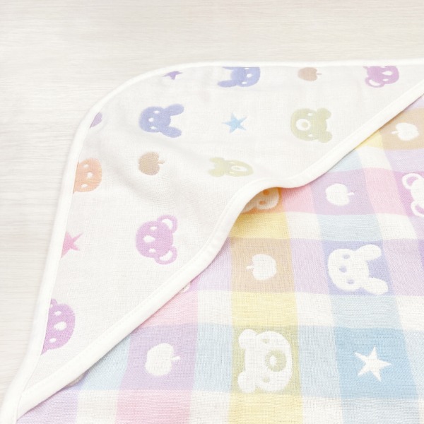 | パステルチェックと動物柄が可愛い、男の子にも女の子にも人気のデザインです。お出掛けの時や普段使いにも、包んだり掛けたり敷いたり色々使える便利なアイテムです。 【日本製のガーゼ】洗えばわかる!その違い。糸からこだわって作った、赤ちゃんの城のガーゼ。その品質と使い心地は、生まれたての赤ちゃんからご年配の方々まで多くの方に愛されています。重ねることで空気の層ができ吸水性・保水性がアップ!夏だけでなく一年中活躍する素材でお洗濯するほどふんわりとした柔らかさが増します。 |