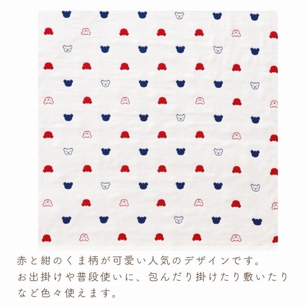 | トリコロールカラーのくま柄が可愛い、男の子にも女の子にも人気のデザインです。 お出掛けの時や普段使いにも、包んだり掛けたり敷いたり色々使える便利なアイテムです。 【日本製のガーゼ】洗えばわかる!その違い。糸からこだわって作った、赤ちゃんの城のガーゼ。その品質と使い心地は、生まれたての赤ちゃんからご年配の方々まで多くの方に愛されています。重ねることで空気の層ができ吸水性・保水性がアップ!夏だけでなく一年中活躍する素材でお洗濯するほどふんわりとした柔らかさが増します。 |