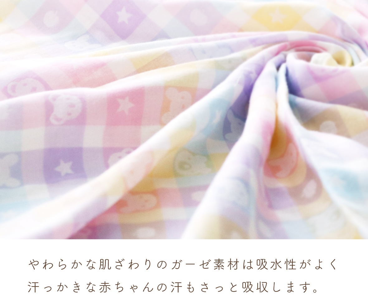 パステルチェックと動物柄が可愛い、男の子にも女の子にも人気のデザインです。 【日本製のガーゼ】 洗えばわかる!その違い。 糸からこだわって作った、赤ちゃんの城のガーゼ。 その品質と使い心地は、生まれたての赤ちゃんからご年配の方々まで多くの方に愛されています。 重ねることで空気の層ができ吸水性・保水性がアップ! 夏だけでなく一年中活躍する素材でお洗濯するほどふんわりとした柔らかさが増します。 |
