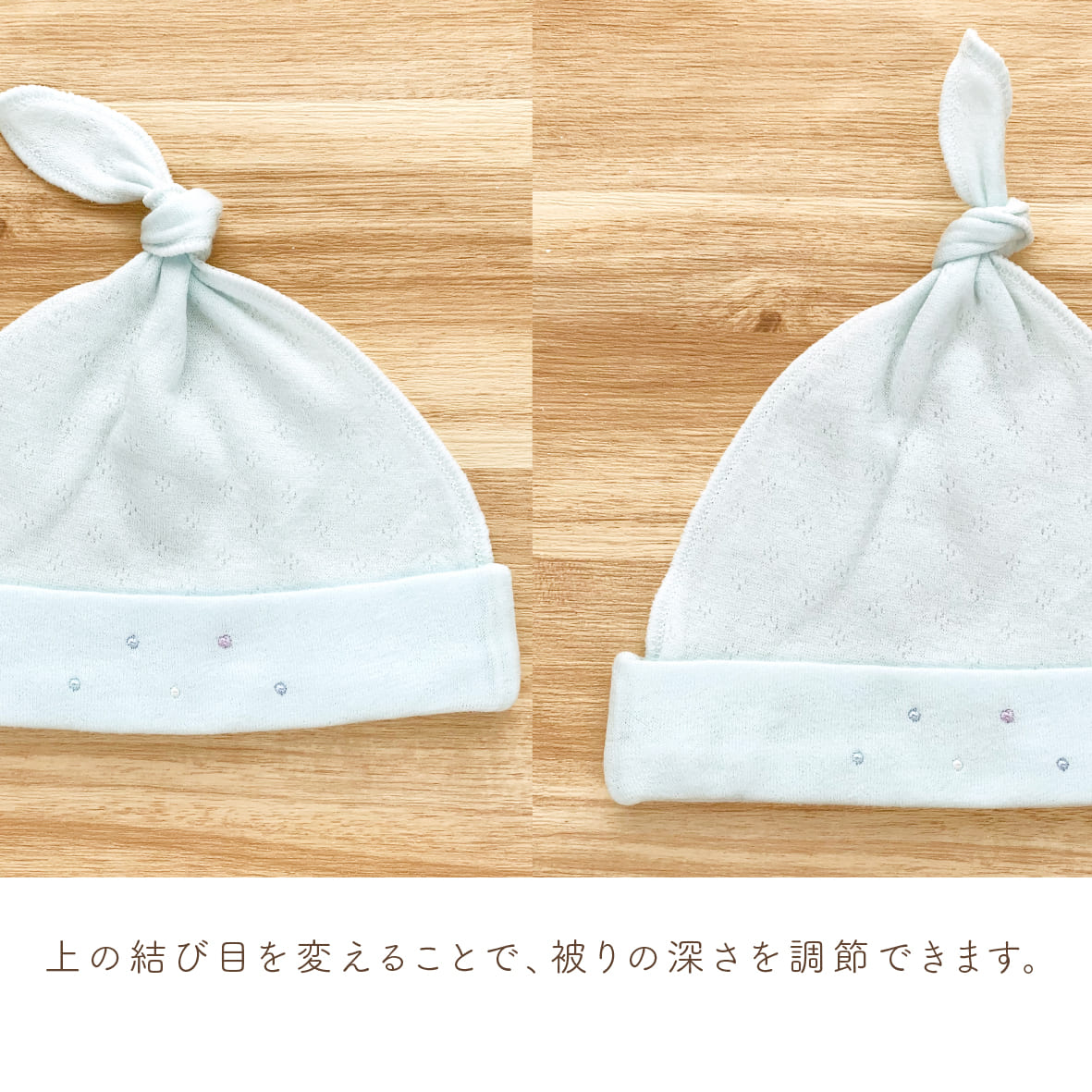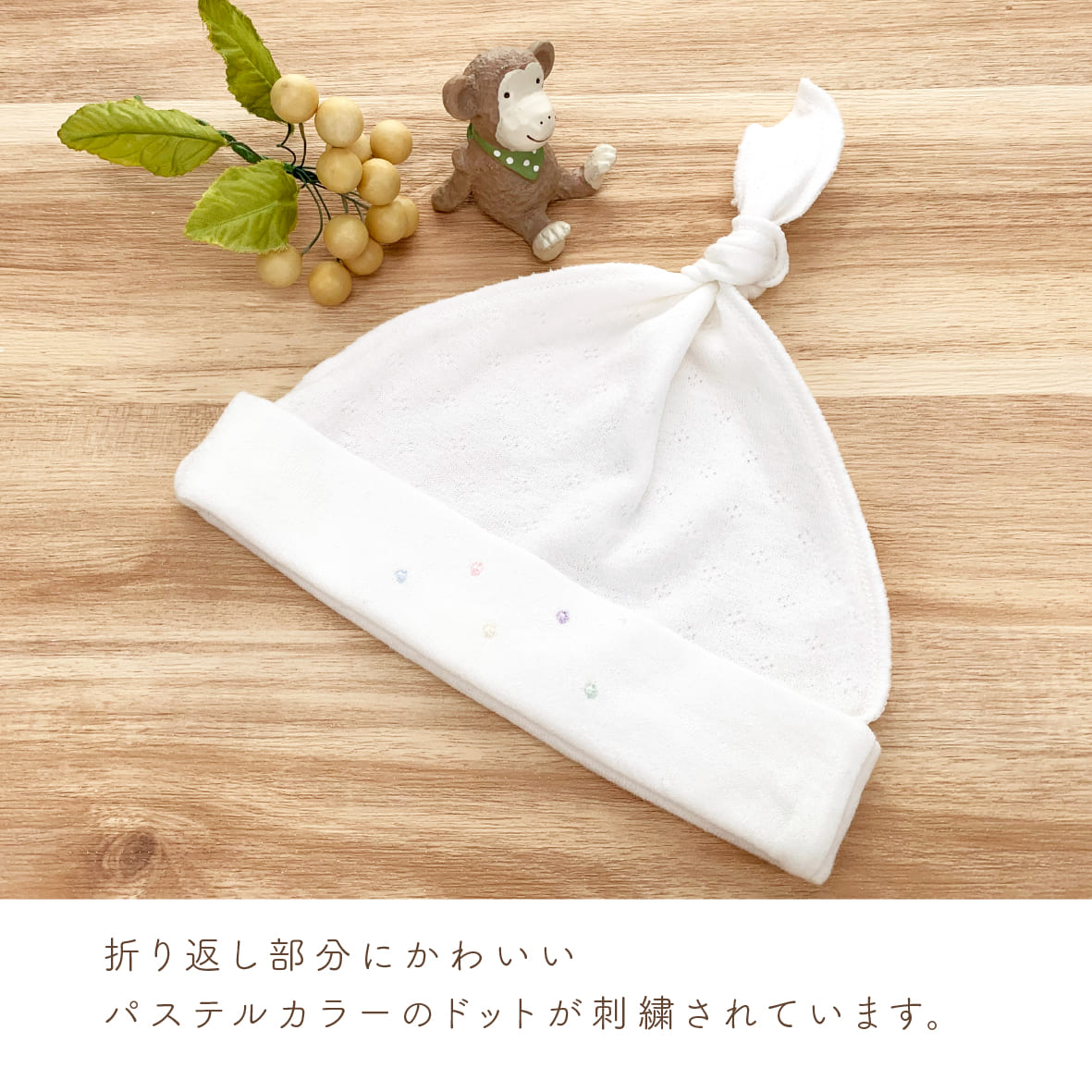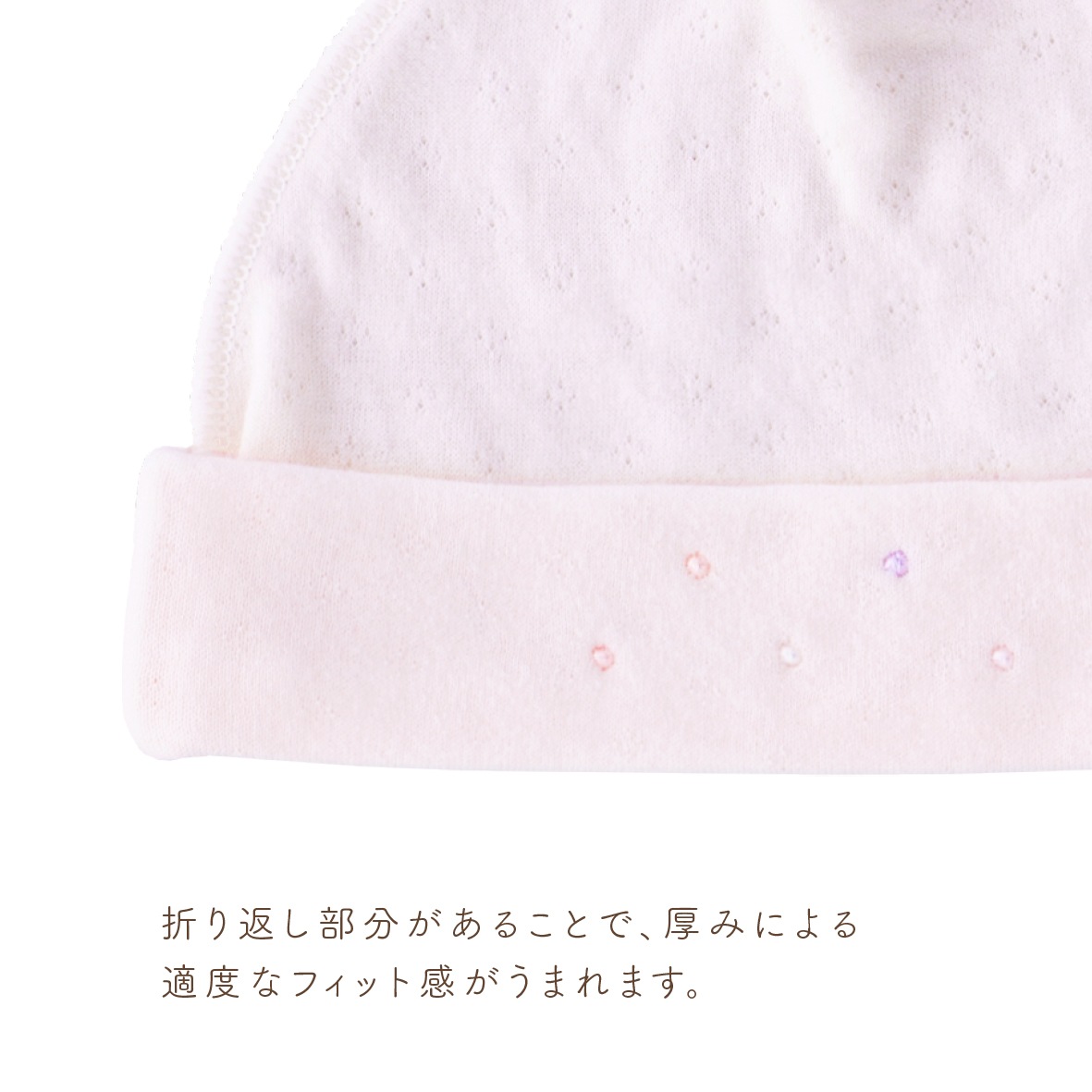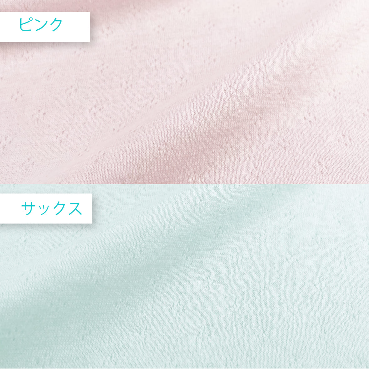 | 洗っても硬くならず、軽くてふわふわのやわらかさを追求したスマイルコットンを使用。縫い目を表にすることで、デリケートな肌への刺激を最小限にした、赤ちゃんにやさしい縫製です。