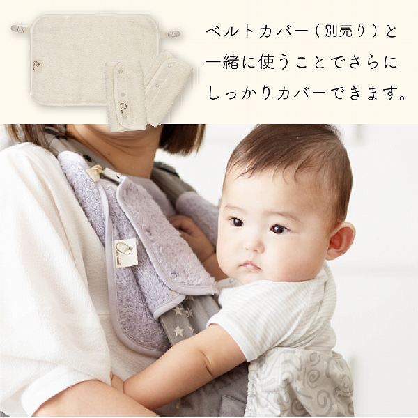 | 抱っこひもにクリップで取り付けます。ボリュームのあるタオル地でよだれをしっかり吸収。前向き抱っこの時も対面抱っこの時も、取り付けが出来るので、ママ・パパのお洋服や抱っこひもをよだれからガードします。 エアーかおるの抱っこ紐カバーはこちら▶ |