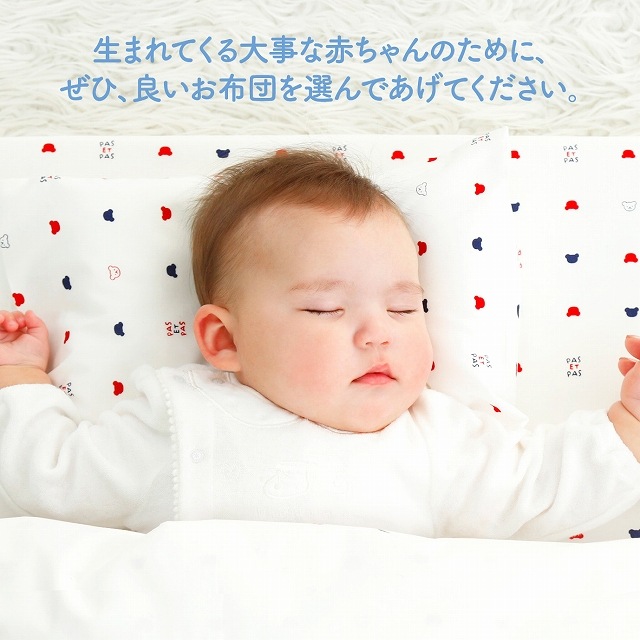 | <ポイント1> 適度な固さ ・赤ちゃんの背骨はおなかの中ではゆるやかなCの字になっています。生まれてきて初めて平らなところで寝ます。その時、もしお布団がやわらかいと赤ちゃんのおしりや背骨が沈み込んで深いCの字になり、不自然な状態になります。だから、赤ちゃんの敷布団は適度な固さが必要と言われています。 <ポイント2> 優れた通気性 ・赤ちゃんはとても汗っかき。大人の2倍以上の汗をかくとも言われています。赤ちゃんの城が独自開発した「エコホールサンドマット」は通気性に優れた三層構造の敷布団。敷布団の赤ちゃんが触れる面にたくさんの通気口がありそこから、湿気をすって横から逃がす構造になっています。 【お手入れ方法】 ・敷布団の側 洗濯後の縮みにより中身が装着しにくくなりますので、できるだけ洗われないようにしてください。どうしても水洗いが必要な時は、ファスナーを閉じて洗濯ネットに入れ、他の洗濯物にからまないようにして洗ってください。洗濯後若干の縮みがありますので、中身を入れるときに多少の力が必要になります。干す前にたて、よこ方向ともよく伸ばしておくと縮みが少なくなります。 ・敷布団の中身 敷きふとんの中身は、通気マットの材料であるパームの繊維が折れますので、洗濯はお避け下さい。できるだけキルトパッド、防水シーツを敷いて、中身が汚れないようにご使用ください。もし、汚れた場合はその部分だけタオルなどに水を含ませ汚れを吸い取ってください。 |