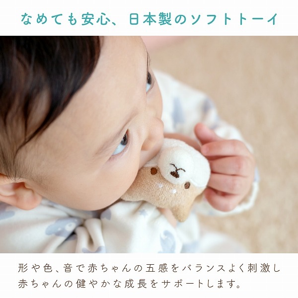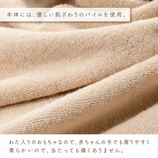 | 日本製のベビー用おもちゃです。赤ちゃんの小さな手でも持ちやすいサイズ感なので、赤ちゃんの初めてのおもちゃにおすすめです。やわらかいパイル生地が使われているので触り心地抜群!優しい鈴の音が赤ちゃんの興味を引きつけます。かわいいまめしばデザインで、出産祝いのギフトにもぴったりです。 お洗濯は軽く手洗いをして、よく乾燥をさせてください。 安全の為、破損変形している場合は使用しないでください。 |